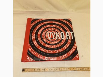 Vykort Album. Ett album för vykort med spiralbindning och röda pärmar.