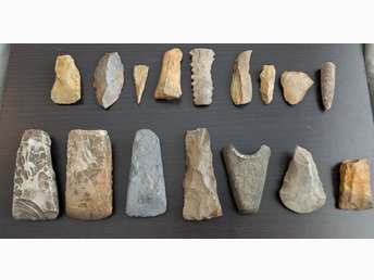 Samling pilspetsar stenålder. Nio stycken. Längsta ca 40 mm.