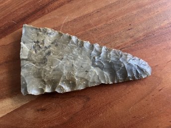 Pilspets, flinta, slagen yta. Gotland. Stenålder.