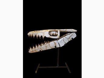 Fossiliserad Mosasaurus-skalle i Kintsugistil. Sen Kritaperiod