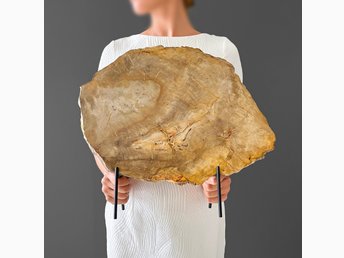 Förstenat fossilt trä 25 x 36 cm inklusive stativ av metall 20-23 miljoner år