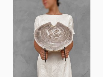 Förstenat fossilt trä 28 x 30 cm inklusive stativ av metall 20-23 miljoner år