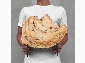 Förstenat fossilt trä 26 x 31 cm inklusive stativ av metall 20-23 miljoner år