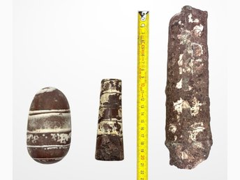 Uppsättning av tre Orthoceras fossila fragment från Sweden, 10-21cm