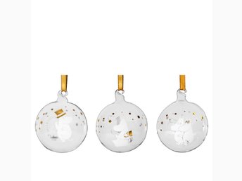 Mumin set med 3 julkulor. Glittrande stjärnor