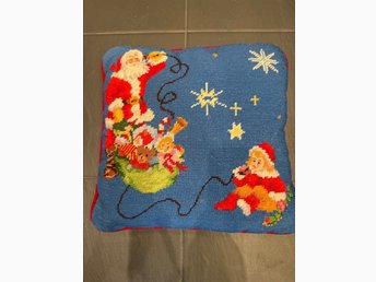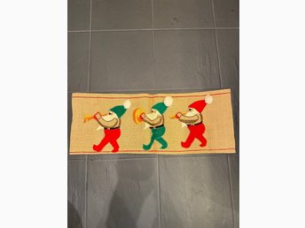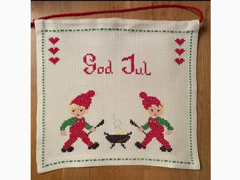 Vintage broderad julbonad jul bonad med tomtar God Jul ca40x35 cm