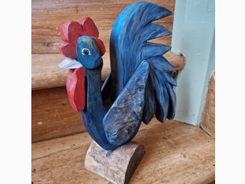 Ståtlig tupp i trä hantverk fint originell tupp till höna