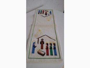 Korsstygnsbroderad löpare med julmotiv