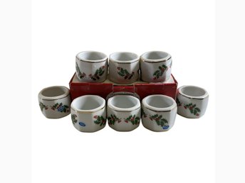 8 st Servettringar Porslin Julmotiv Gulddekor Vit Made In Japan