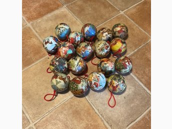 18 julkulor, troligen i papiermaché