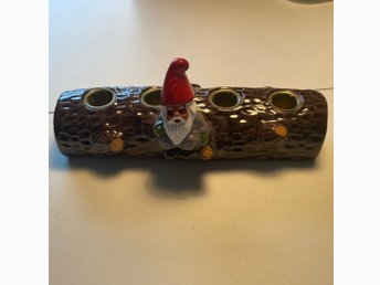 Ljusstake i form av en trädstam med en tomte