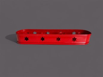 Adventsljusstake i Röd Metall - Juldekoration - Ljusstake med Stjärnor -Vintage