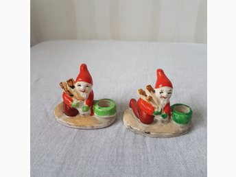 Tomtar, 4 stycken, porslin. Vintage.