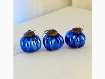 Tre tyska julgranskulor i handblåst glas, ca 1880-tal