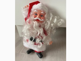 Hälsande tomte med röda kläder. Höjd 21 cm, vintage, retro