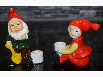 2 äldre tomtar med ljushållare, porslin, Klicka upp bilden!