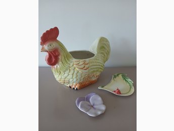 Paket inredning Keramik påsk tupp kruka majolika pensee vallmo