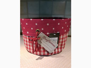 Ny röd brödkorg/presentkorg i kraftigt tyg med en rund,vacker form i bomullstyg