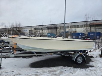 Rejäl plastbåt liknande Ryds 4,80x1,90m med båtvagn.