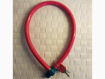 Cerise, turkos cykellås, vajerlås, från Luma, Spanien. 2 nycklar. Vajer: 65 cm.