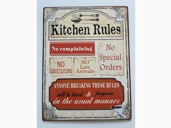 Väggskylt - köksregler. Skylt - text, ordspråk och citat. Köksinredning.