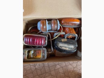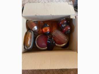 Full låda Lyktor och lyktglas till äldre veteran lastbil buss Scania Vabis Volvo