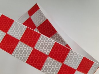 Reflextejp - Varningstejp - reflex tejp tape - silver-röd rutig - 5 cm x 300 cm