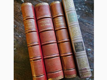 Halvfranska band 3 franska och 1 tysk dekorativa i bokhyllan