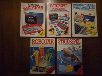 5 böcker ur hemdatorserien från Brombergs. Med bl.a. Stridsspel och Robotar.