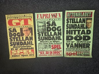 Löpsedlar STELLAN SUNDAHL Död Programledare & komiker SVT 23 februari 1999.