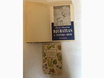 Vintage böcker – Floran i färg + Djuratlas svenska djur (retro samlarobjekt)
