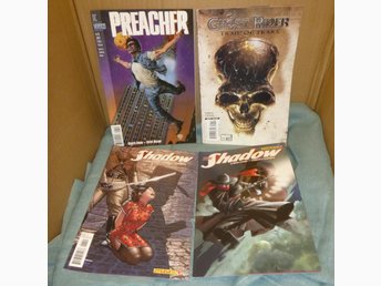 Serietidningar av Garth Enni: Preacher #26, Ghost Rider #1, The Shadow #4