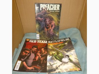 Serietidningar av Garth Enni: Preacher #25, Red Team #1, Battlefields #9