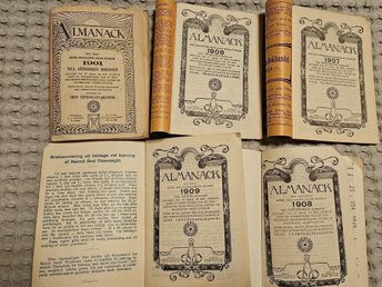 Samling almanackor från 1900-talet. 5 st. Gbg horisont. Annonser från Uddevalla.