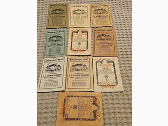 Samling almanackor från 1940-talet. 10 st. Med div artiklar. Uddevalla annonser.
