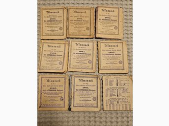 Samling almanackor från 1880-talet. 9 st. Göteborgs horisont. Med div artiklar.