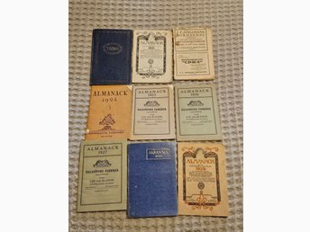 Samling almanackor från 1920-talet. 9 st. Med div artiklar och lokala annonser.