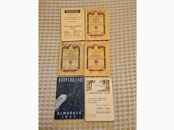 Samling almanackor från 1930-talet. 6 st. Med div artiklar och lokala annonser.