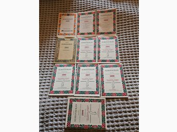 Samling almanackor från 1990-talet. 10 st. Med div artiklar.