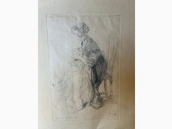 Etsning av Carl Larsson ”Suzanne och Gunlög"