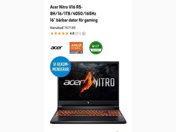 Acer Nitro V16 R5-8H/16/1TB/4050/165Hz 16" bärbar dator för gaming