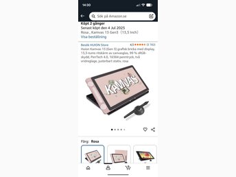 Huion Kamvas 13 Gen 3 – rosa, helt ny/ouppackad