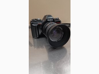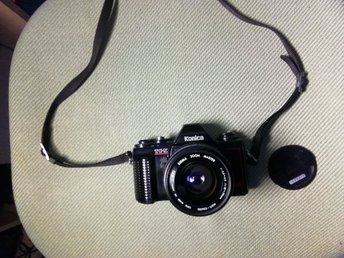 "SYSTEMKAMERA KONICA TC-X". TILLVERKADES 1985-1987. KAMERAVÄSKA INGÅR.