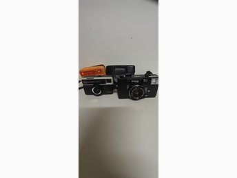 Två kameror: Konica C35 och Kodak Instamatic