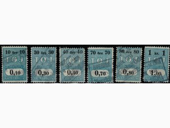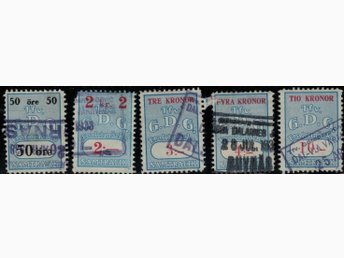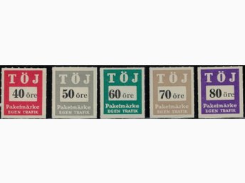 Fraktmärken TÖJ (Östergötland) 5 olika postfriska