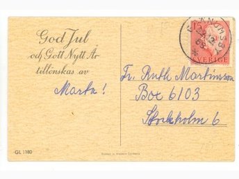 GUSTAF VI ADOLF 15 ÖRE PÅ JULKORT PRAKT GRÄNUMSBY 22-12-58 SE BILDER
