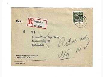 Rekbrev Stämplat Malmö 4 30/11 1954? Returnerat