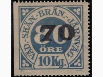 Fraktmärke 70 på 80 öre VSBJ (Väderstad-Skänninge-Bränninge) ostämplad