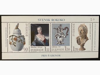 Svenskt frimärksblock från 1979 "Svensk Rokoko"