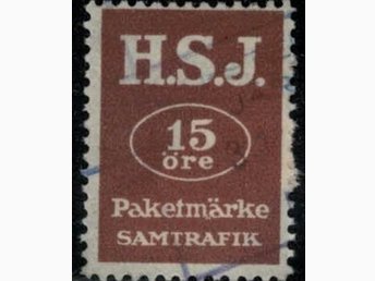 Fraktmärke 15 öre HSJ (Hjo-Stenstorp)